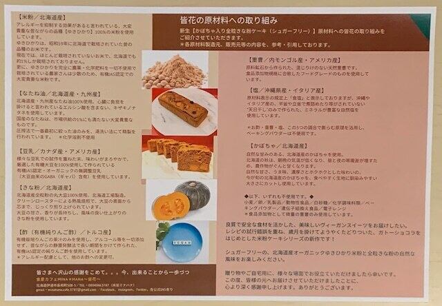 原材料については、ガトーショコラのみ掲載させていただきました。