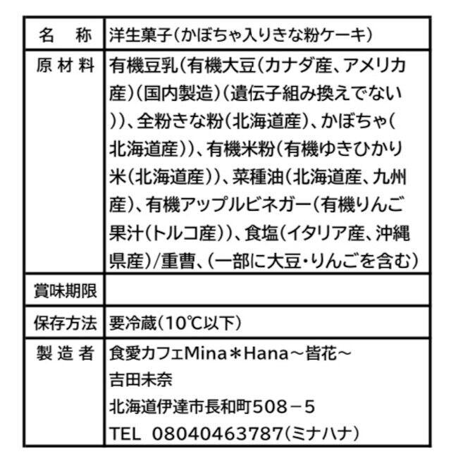 かぼちゃ入りきな粉ケーキのみ、製造日より4日間。