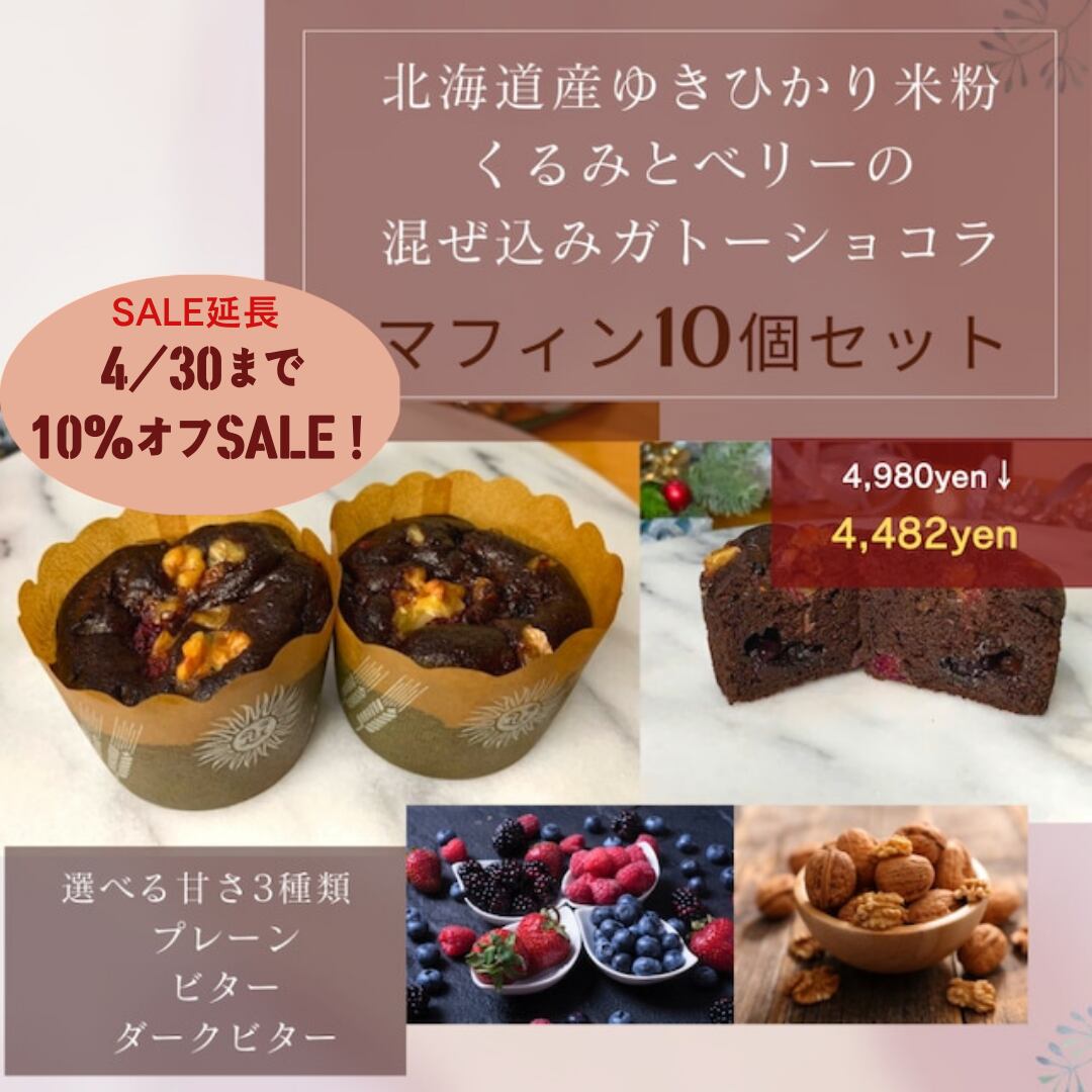 くるみとベリーの混ぜ込みガトーショコラ・マフィン10個セット/特製・ゆきひかり米粉のガトーショコラ/ヴィーガン&グルテンフリー